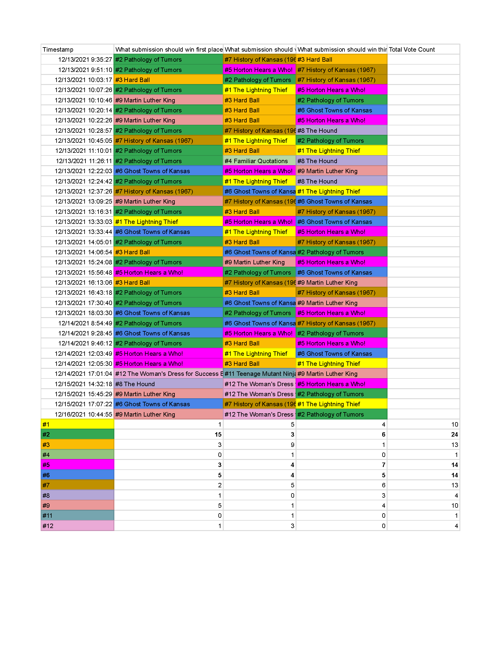 2021 was a heck of a year, and even the MUSTIES were not immune (pun intended) to the mire. The organizer initially left off submissions from Bonner Springs City Library (a TMNT album & a Luke Perry book), and also a submission from the KU Wheat Law Library (A Woman’s Dress for Success book)–surely litigation will follow.
