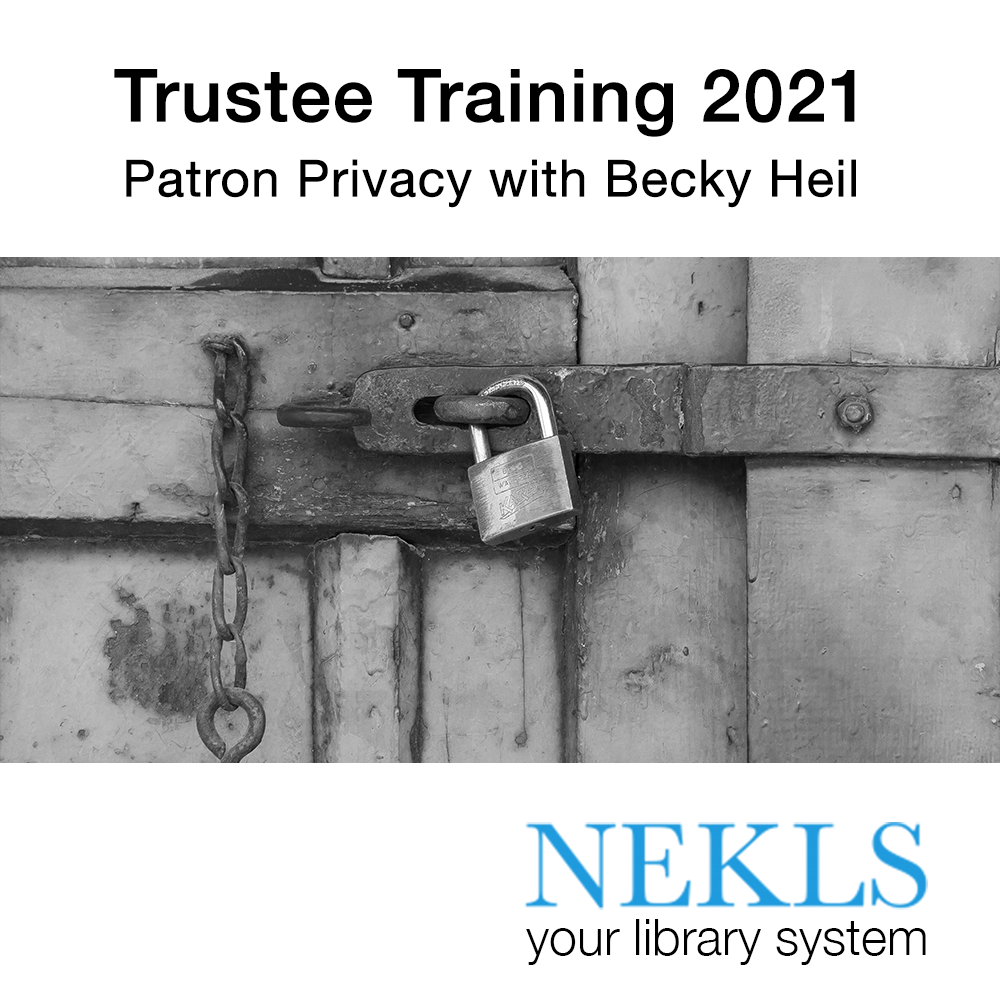 Save the date for our annual trustee training opportunity, our presenter, Becky Heil, will lead a conversation on privacy in the library. This will be a live event on Zoom, but will be recorded for viewing on demand. Register today: https://kslib.zoom.us/meeting/register/tJ0sduyprDMvGNf3W_uoucHnNGb1839O7bzp!