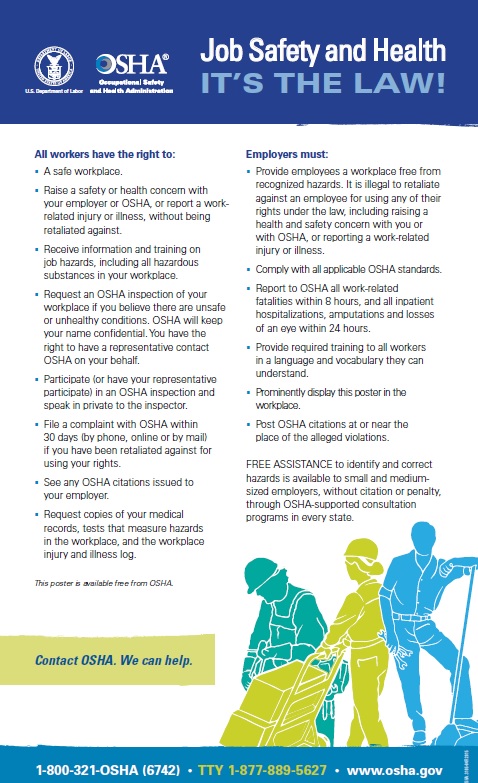 Everybody has seen posters in the break room where they work, right? The ones that talk about workplace safety and minimum wage. They look like this.